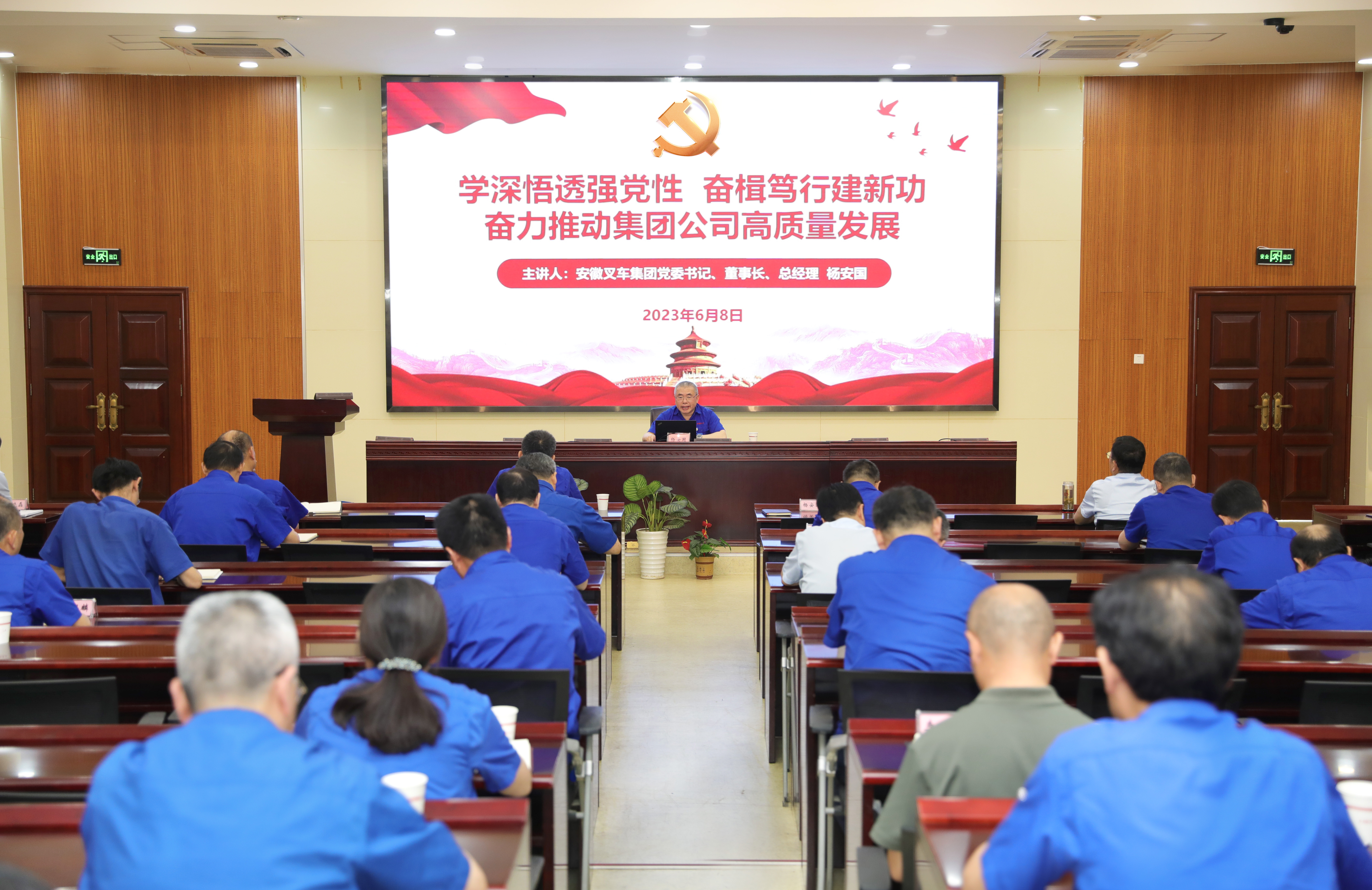 為推動學習貫徹習近平新時代中國特色社會主義思想主題教育走深做實,6月8日下午,安徽叉車集團黨委召開主題教育專題黨課報告會。安徽叉車集團黨委書記、董事長、總經理楊安國作《學深悟透強黨性 奮楫篤行建新功 奮力推動集團公司高質量發展》專題黨課報告。安徽...